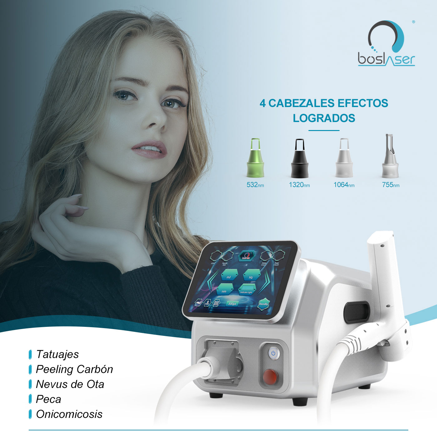 Longitud de onda: 1064nm/532nm/1320nm, 755nm(opcional)